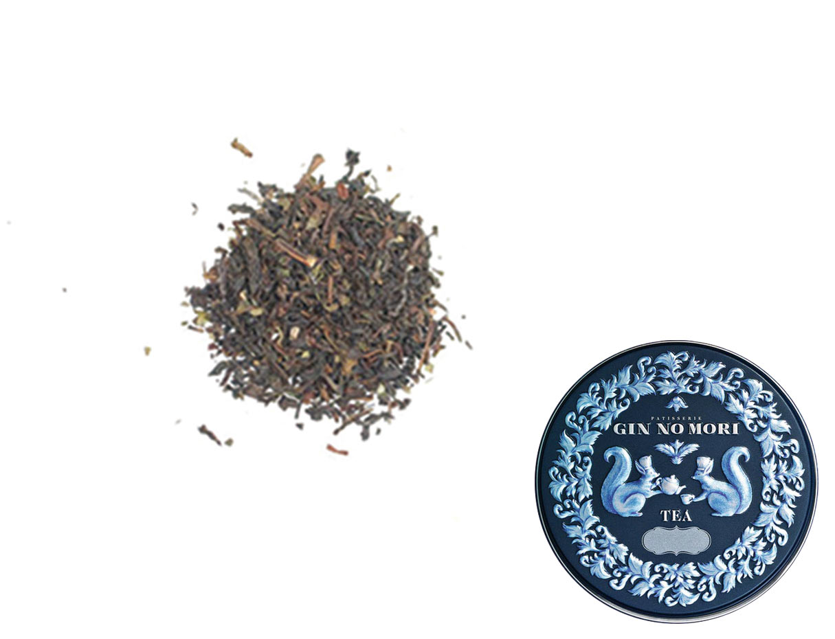 紅茶缶のデザインは二種類。どちらもパティスリーGIN NO MORIの料理人「チェスとナッツ」のイラストが。可愛いサイズの缶はご贈答用ギフトやお手土産にもぴったりな紅茶缶です。ティータイムに、大切な人へのおもてなしに、厳選した味と香りで美味しい時間をお届けいたします。