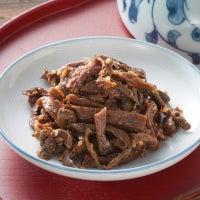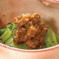 開けると写真の様な角切りの豚が入っていると思っていましたが コロコロした豚の角切りは無く 海苔の佃煮のような肉味噌でした 取り敢えず思っていた食べ方は止めて 同量位の胡麻と和えて ご飯にのせていただきました -